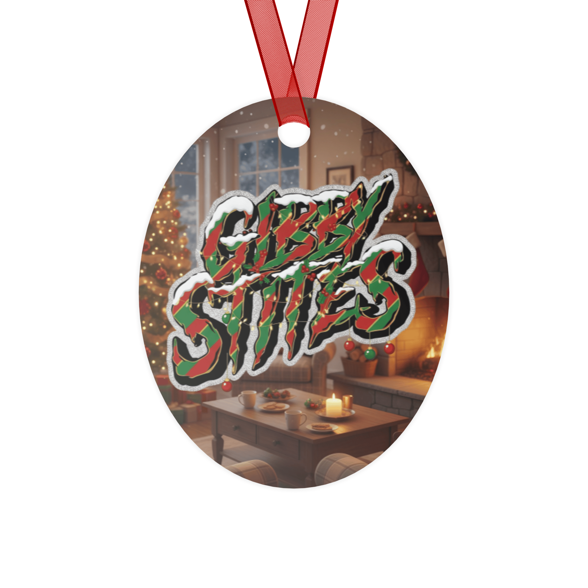 • White aluminum base • Diameter: 3.5″ • Glossy finish • Red ribbon included