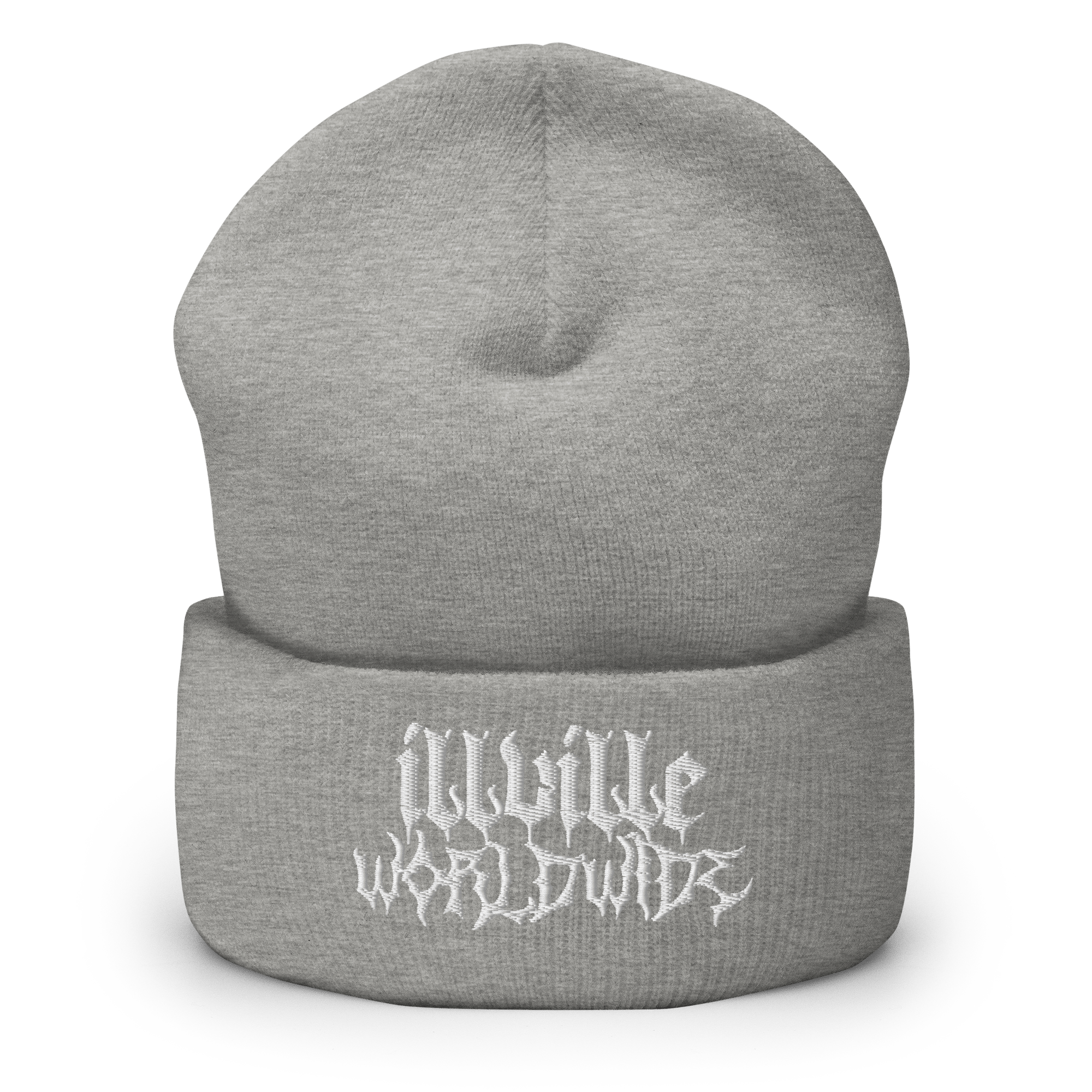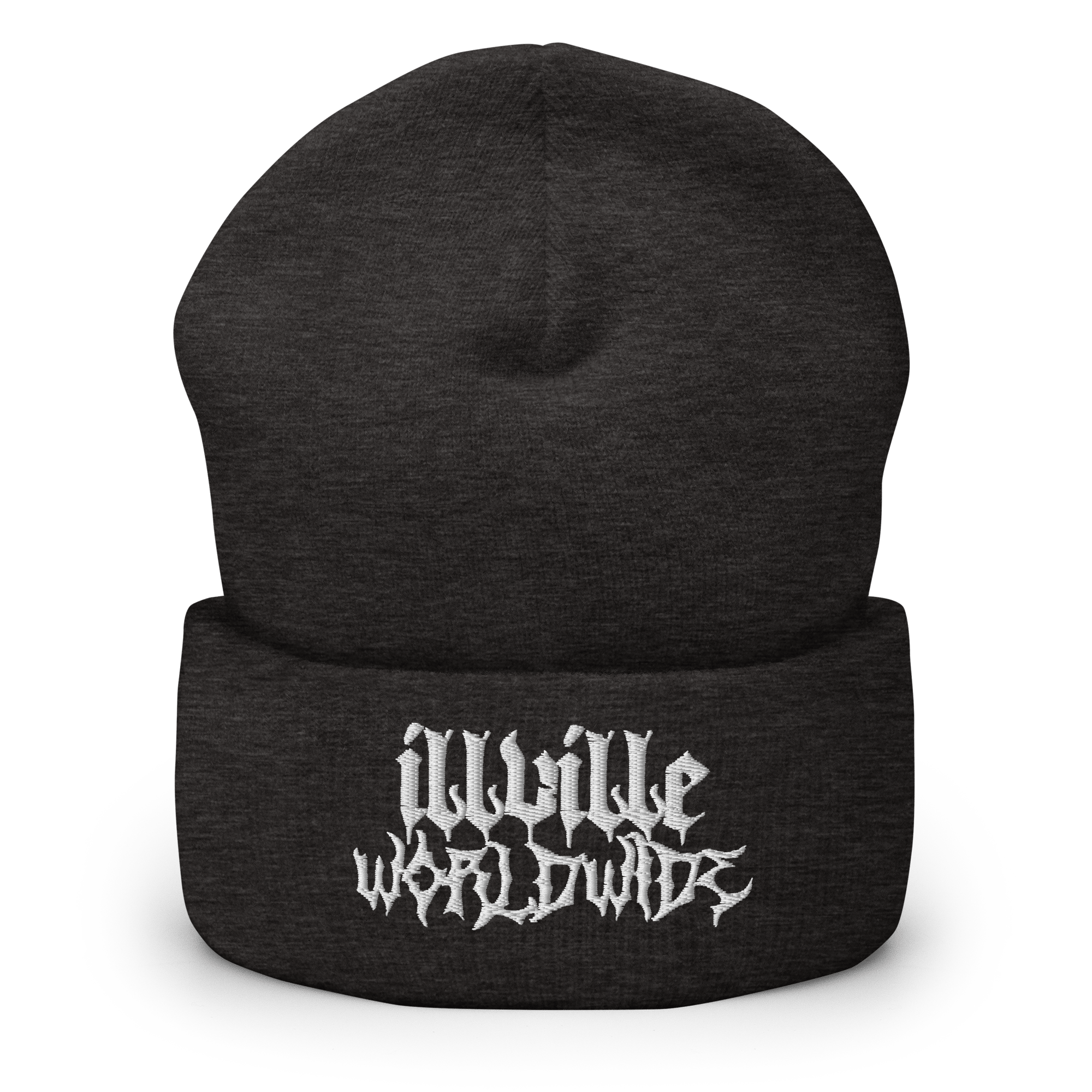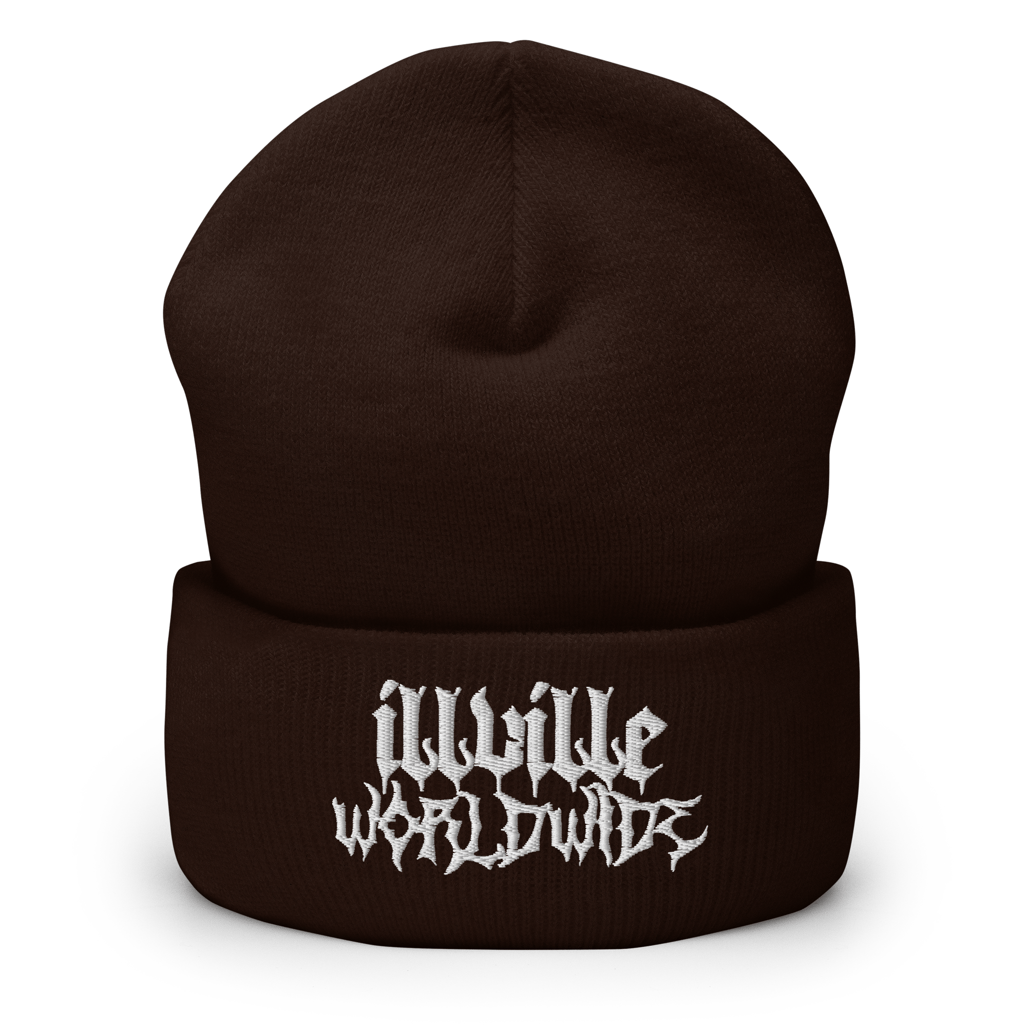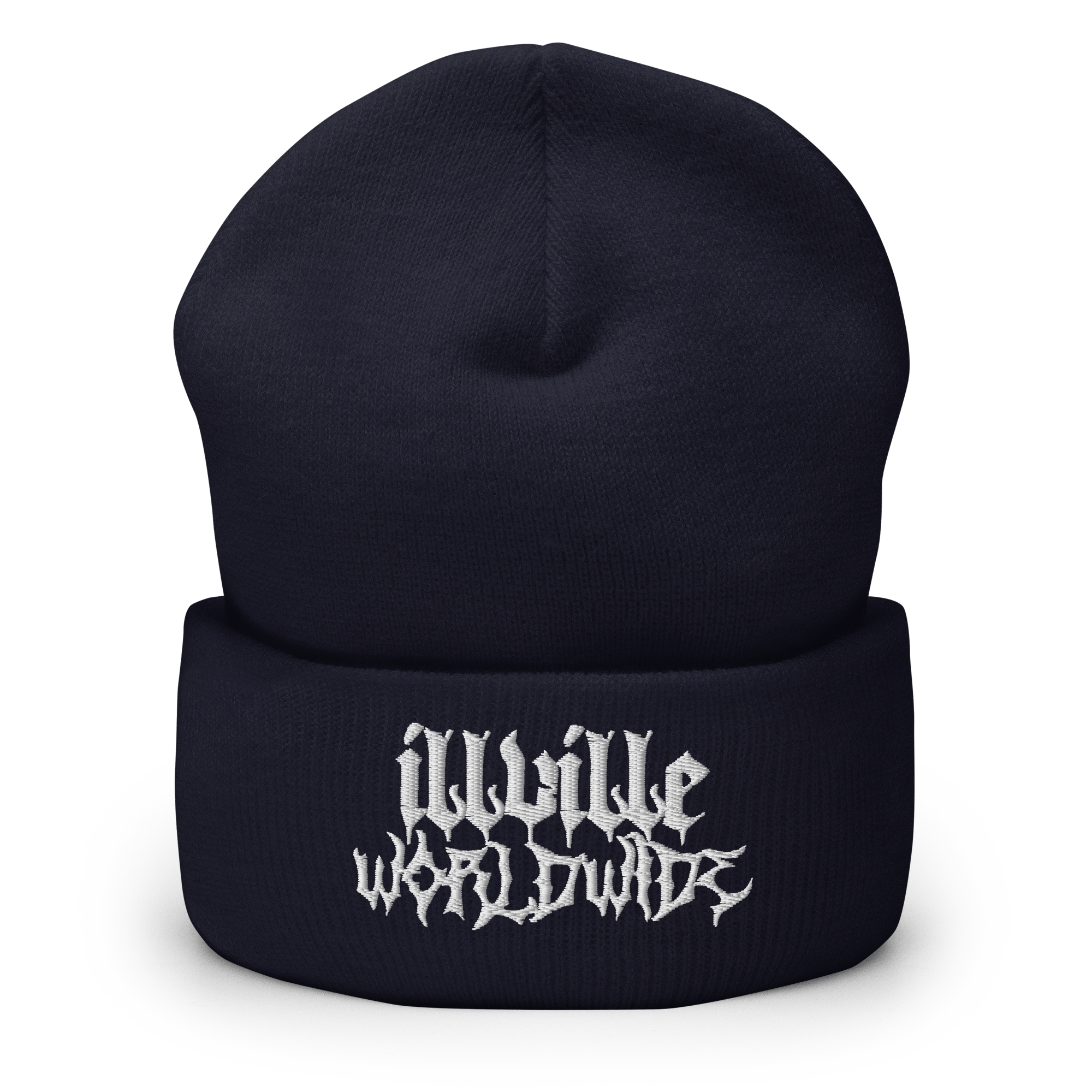the illville Worldwide Y2K style logo embroidered on a beanie.