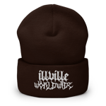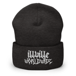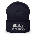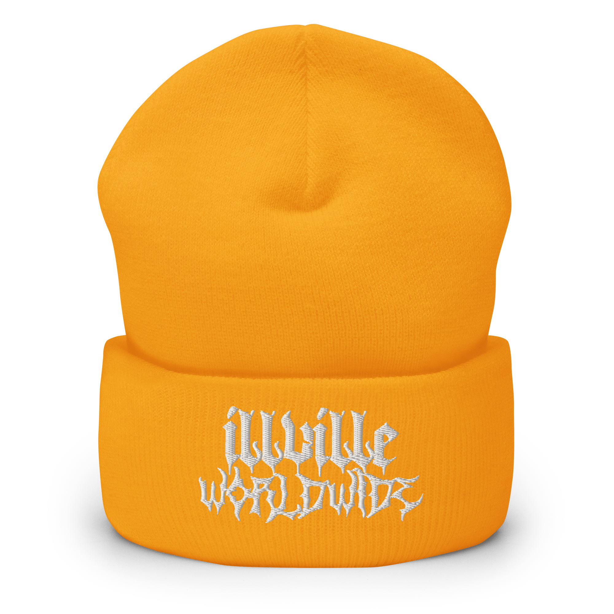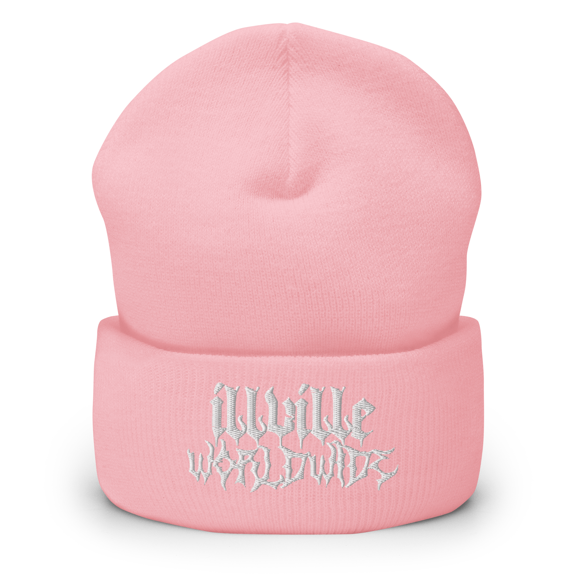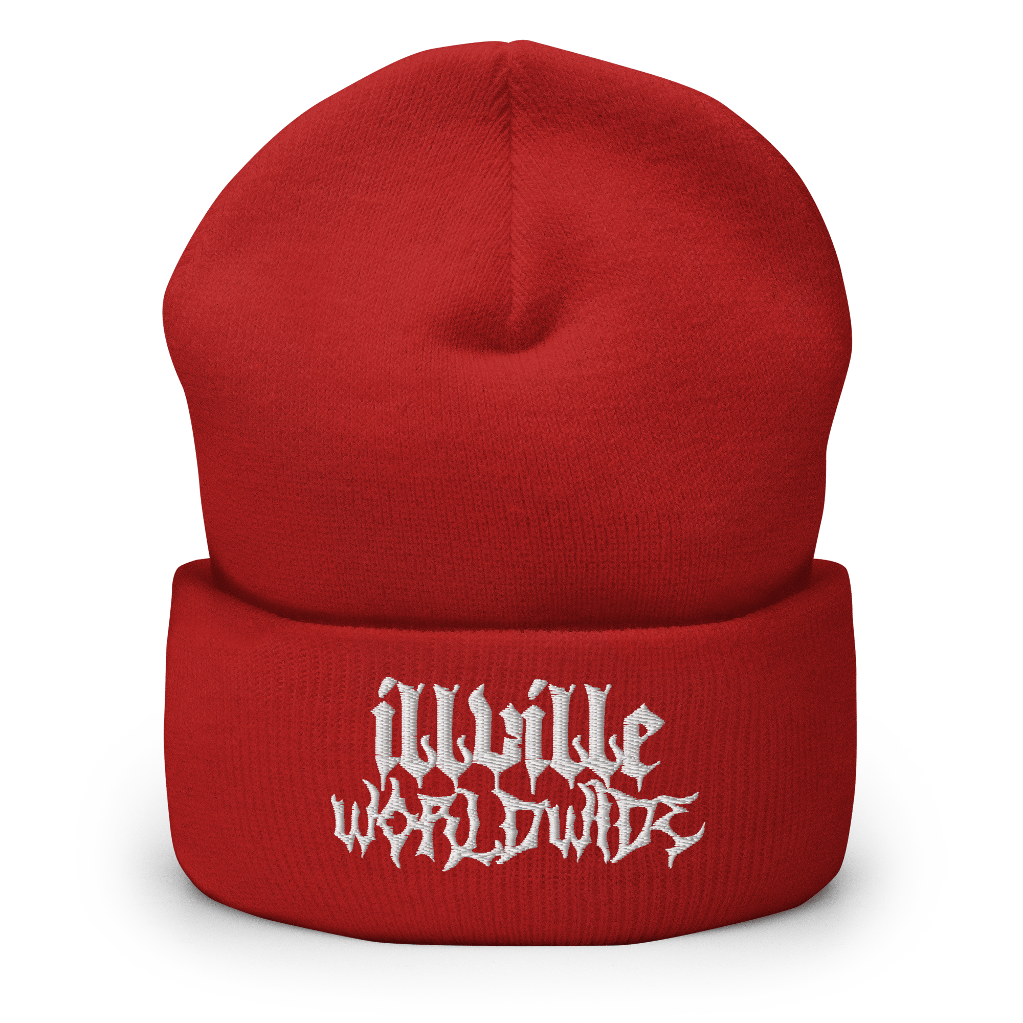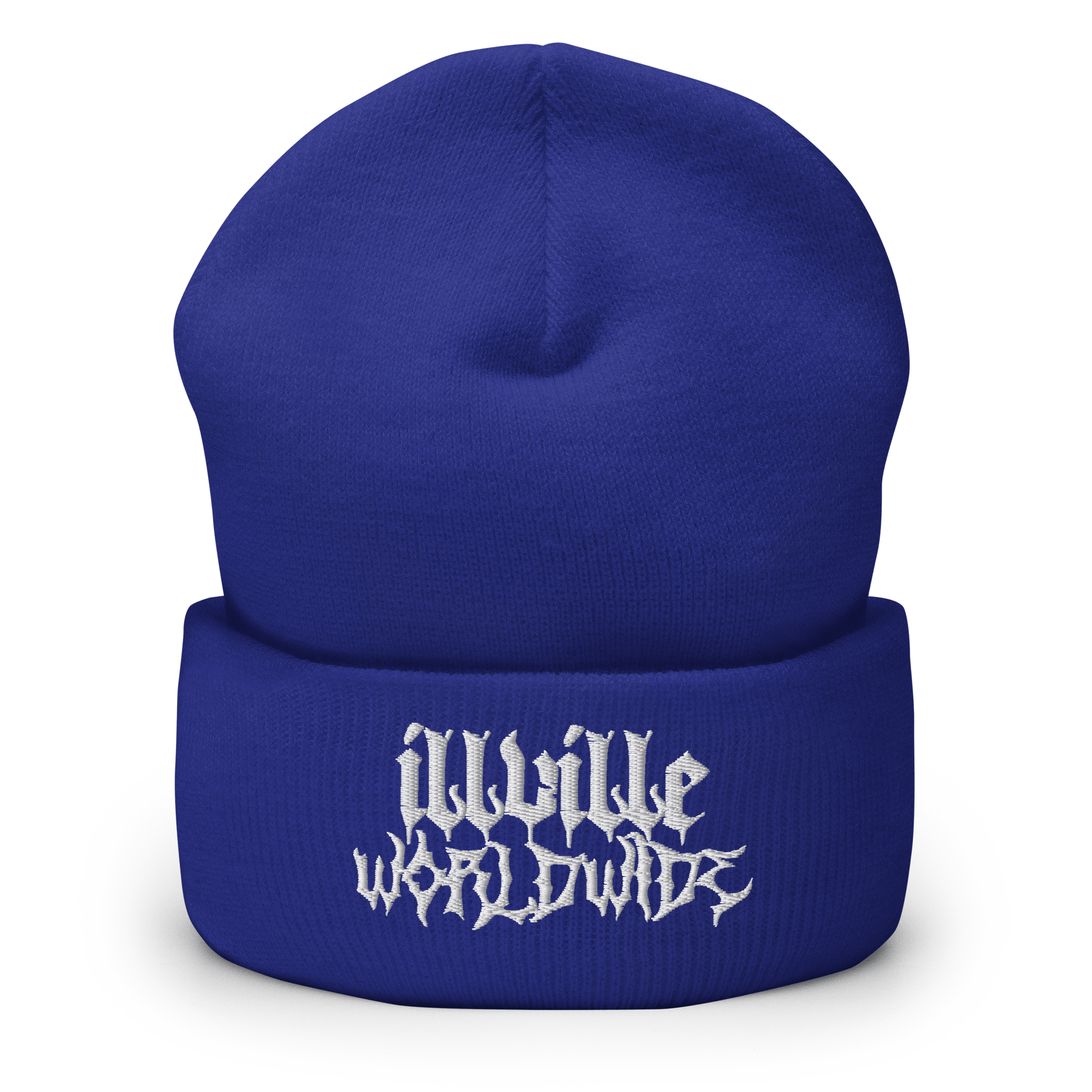 the illville Worldwide Y2K style logo embroidered on a beanie.